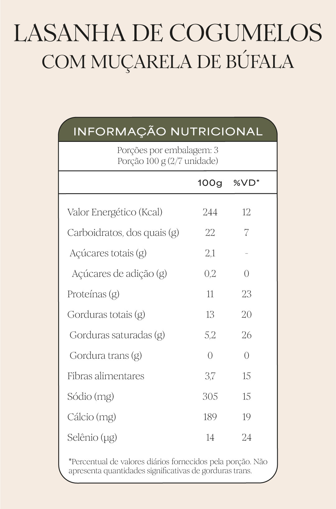 1. Lasanha de cogumelos com muçarela de búfala | 52% da necessidade diária de