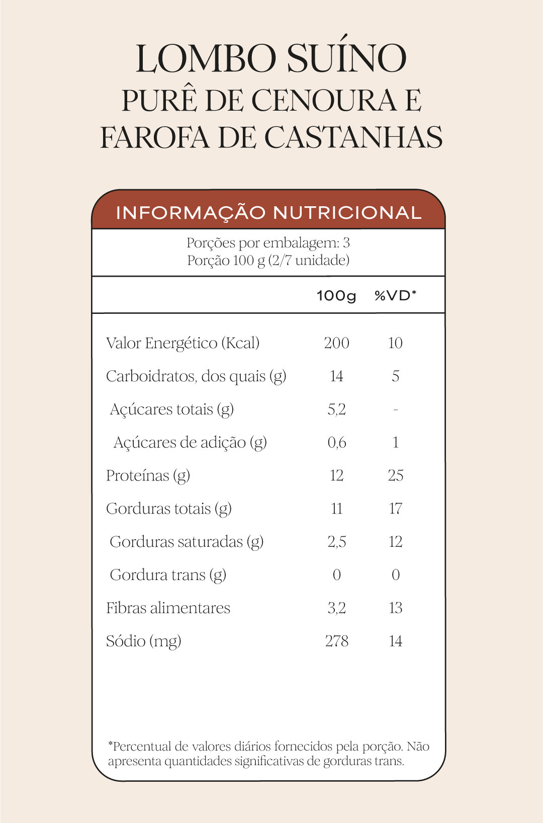 5. Lombo suíno ao molho de laranja e purê de cenoura | 46% da necessidade diária