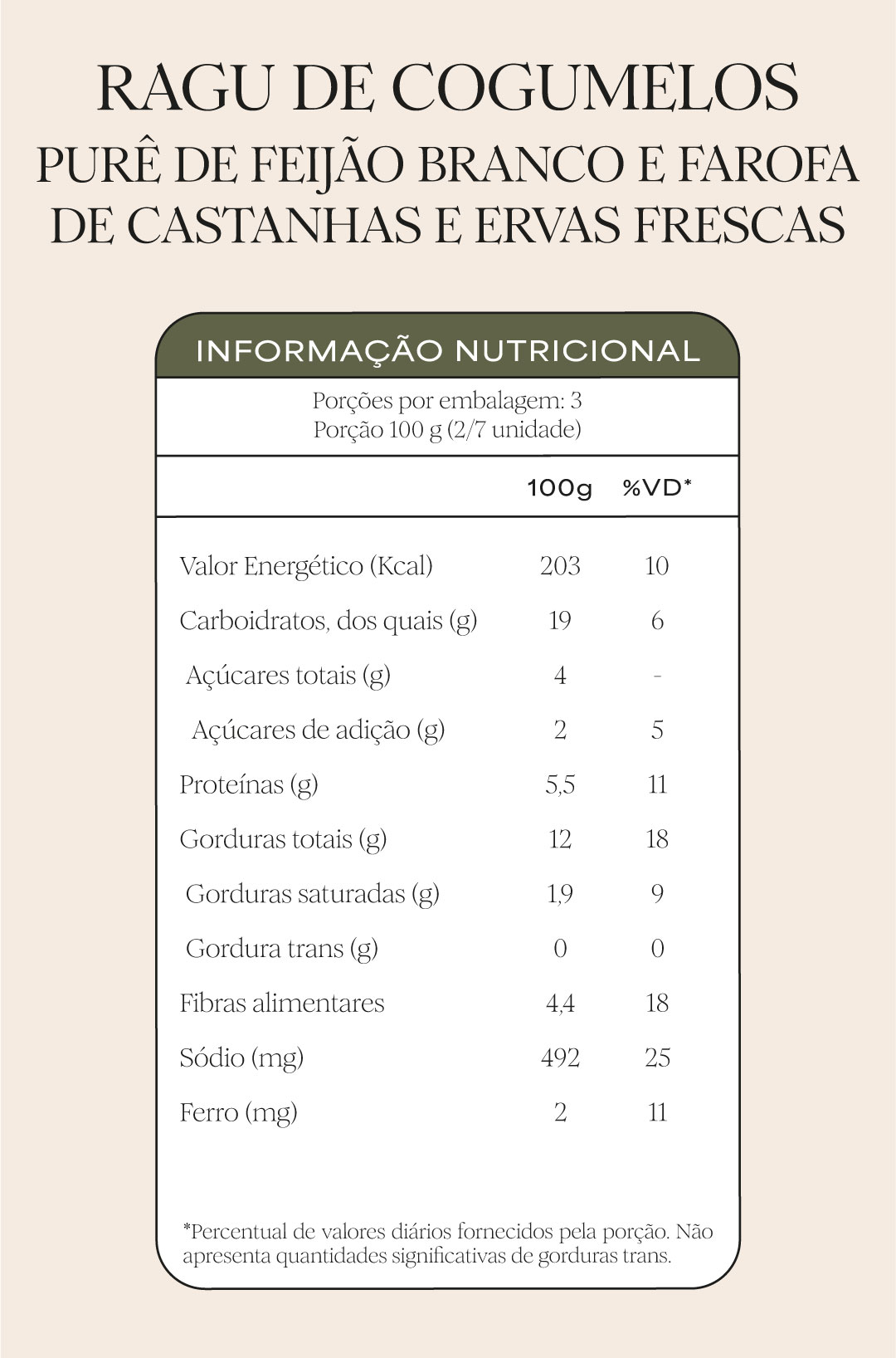 | 62% da necessidade diária de fibras | É uma explosão de sabores! O ragu é feito a