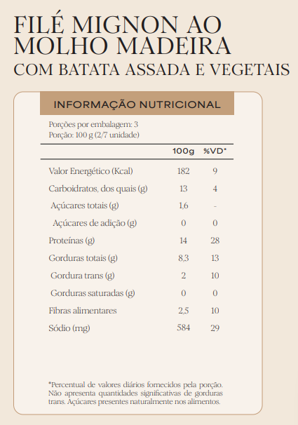 • Filé Mignon ao Molho Madeira e Vegetais: A elegância de um clássico com o nosso toque. Suculento e direto ao ponto, para quem sabe o que quer.